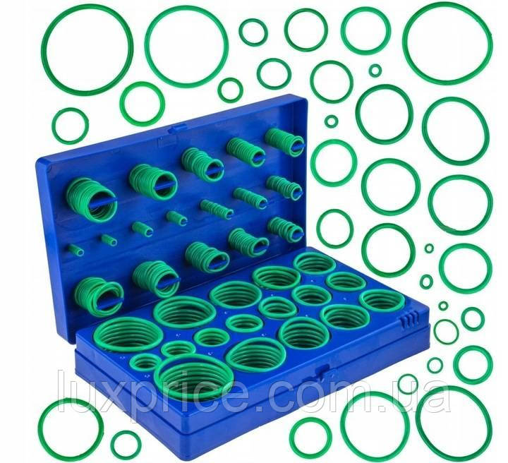 Набір ущільнювальних кілець (O-ring) для обслуговування та ремонту автомобільних систем кондиціонування. У комплекті 419 кілець різних розмірів, упакованих у зручний пластиковий органайзер.